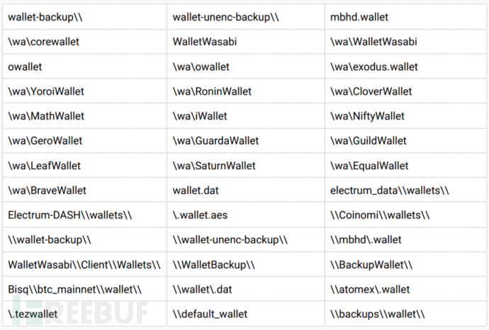 至于Inno Stealer的功能,则包括收集 Web 浏览器 cookie 和存储的凭证、加密货币钱包中的数据以及文件系统中的数据。研究人员列出了可被针对的WEB浏览器35款,加密货币钱包39款。源码库