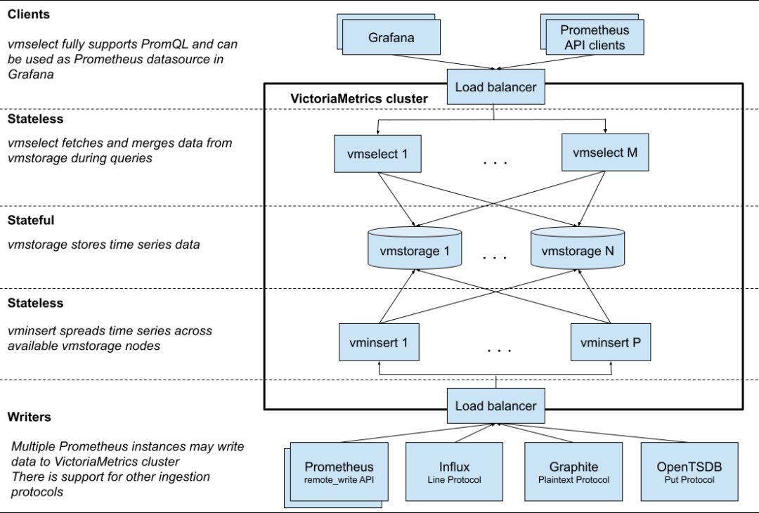 而VictoriaMetrics 在设计时就考虑到了高可用性。它使用复制和集群来确保在实例发生故障时数据不会丢失,从而成为了很多大厂的选择。